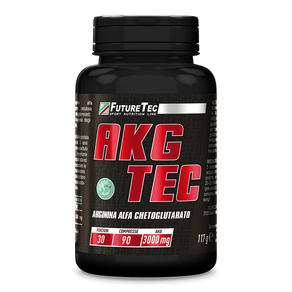 AKG TEC è un integratore alimentare di arginina alfa chetoglutarato (AKG) della massima purezza in compresse da 1000 mg. L’AKG è una forma di arginina molto assimilabile. L’arginina supporta la produzione naturale di GH e di ossido nitrico da parte dell’organismo. L’ossido nitrico agisce da vasodilatatore vascolare, attraverso un aumento della disponibilità di ossigeno molecolare. L’alfa chetoglutarato è un chetoacido che ha un ruolo nei processi energetici delle cellule umane. Non contiene ingredienti di origine animale, adatto anche ai vegani.