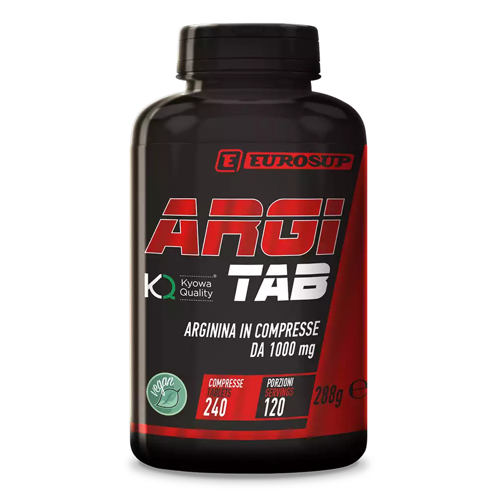 ARGI TAB è un integratore alimentare di arginina di origine vegetale da fermentazione di purezza superiore garantita KYOWA QUALITY®, in compresse da 1000 mg. L’arginina supporta la produzione naturale di GH e di ossido nitrico da parte dell’organismo. L’ossido nitrico agisce da vasodilatatore vascolare, attraverso un aumento della disponibilità di ossigeno molecolare. Non contiene ingredienti di origine animale, adatto anche ai vegani.