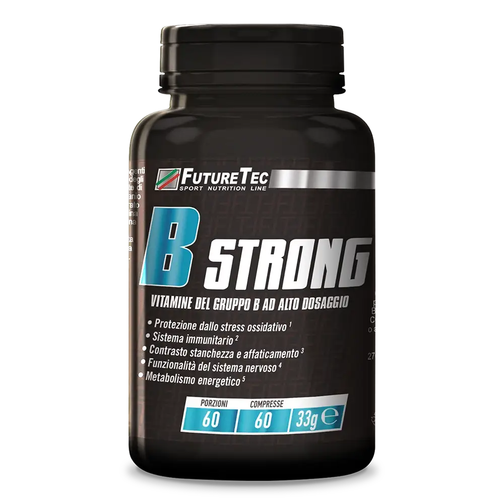 B STRONG è un integratore ad alto dosaggio di vitamine B, utile in caso di stanchezza e stress, adatto ai vegani.