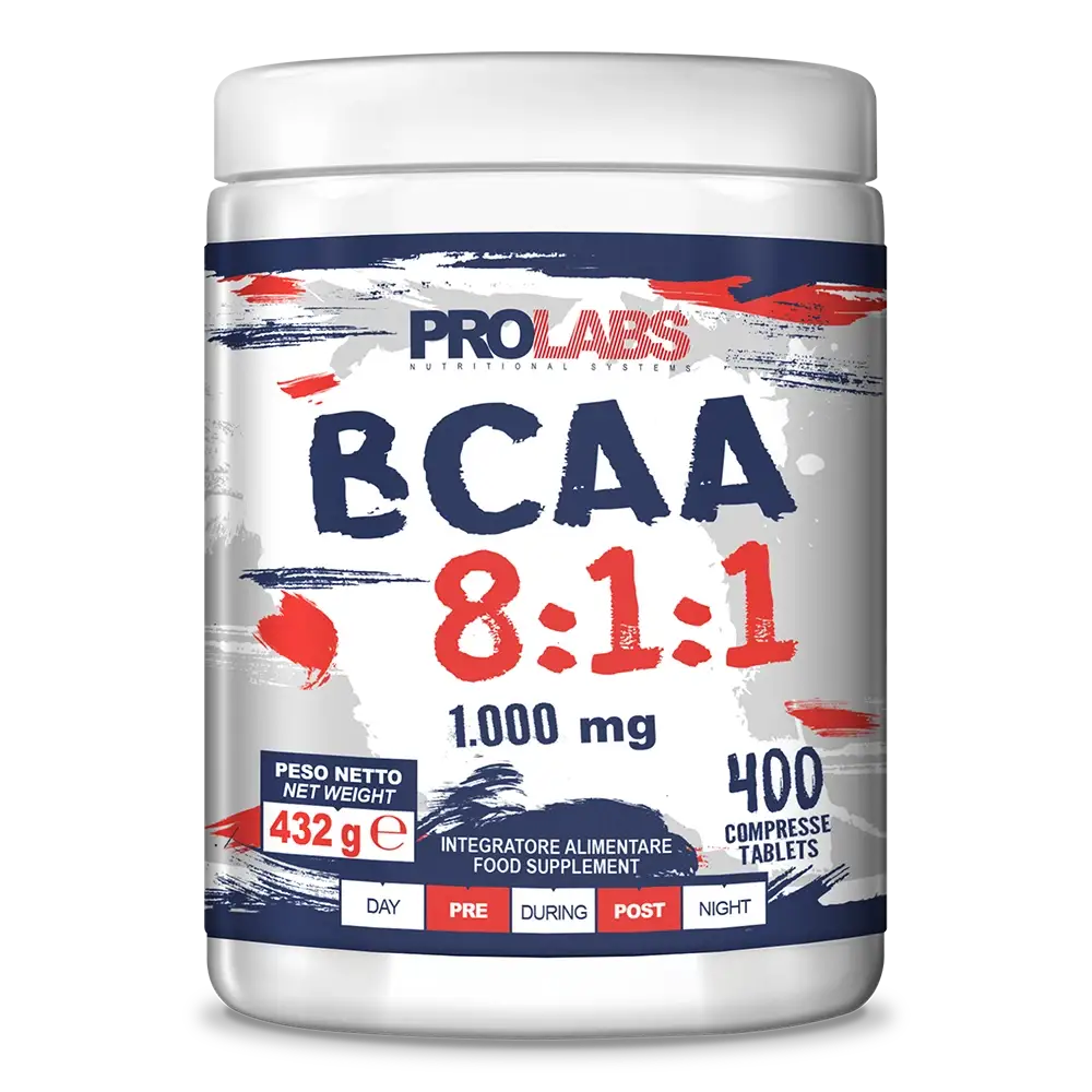 BCAA 8:1:1 è un integratore alimentare di aminoacidi a catena ramificata ottenuti mediante fermentazione, con vitamine B1 e B6. I BCAA sono aminoacidi essenziali, l’organismo infatti non è in grado di sintetizzarli e devono pertanto essere assunti attraverso la dieta. BCAA 8:1:1 è realizzato in compresse da 1000 mg nell’innovativo rapporto 8:1:1 (8 parti di L-Leucina, 1 di L-Valina e 1 di L-Isoleucina). Gli aminoacidi a catena ramificata sono un fondamentale supporto muscolare per gli sportivi. Se assunti prima degli allenamenti hanno funzioni principalmente energetiche ed anticataboliche, fungono da substrato energetico al fine di preservare la massa muscolare dal non essere disgregata a scopo energetico. Se assunti dopo gli allenamenti favoriscono la costruzione e il ripristino della massa magra. La formula infine comprende la vitamina B1 che supporta il normale metabolismo energetico e la vitamina B6 che contribuisce a ridurre stanchezza, affaticamento ed al sostegno del normale metabolismo delle proteine e del glicogeno. Non contiene ingredienti di origine animale ed è adatto anche ai vegani.