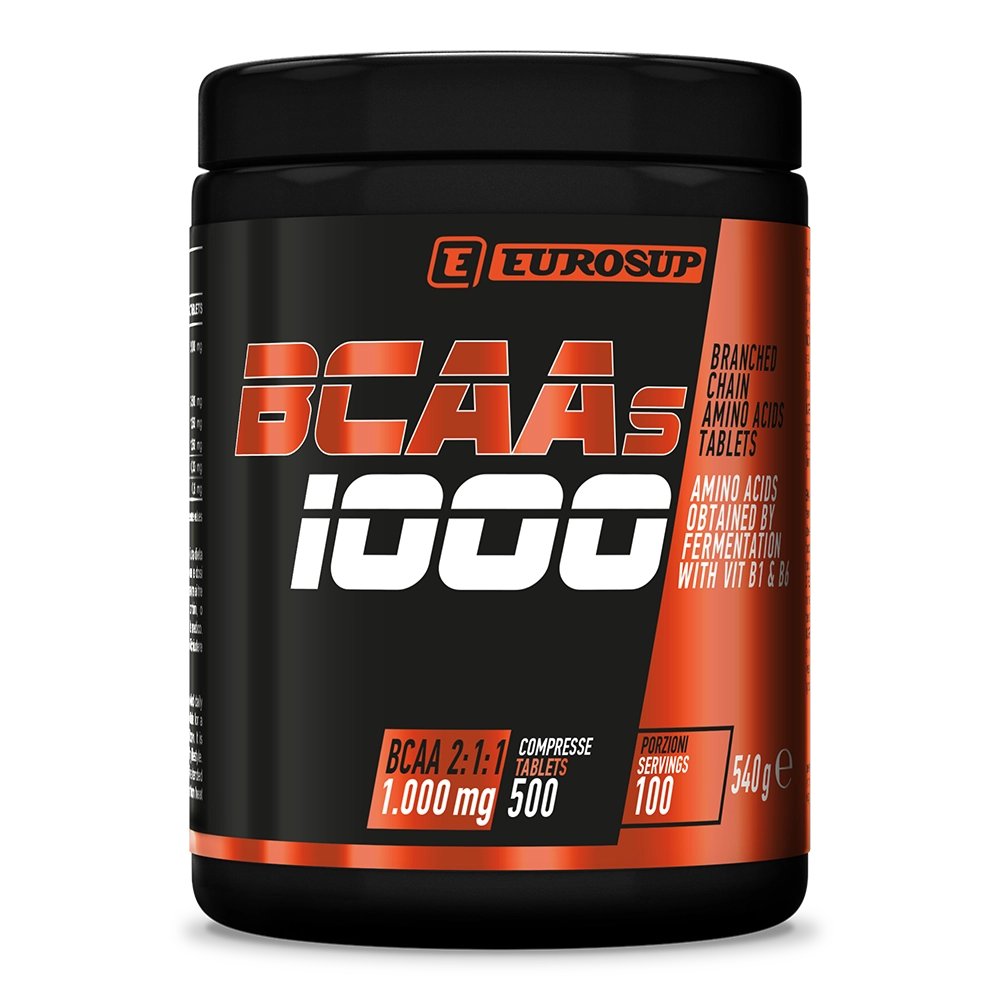 - Compresse da 1000 mg di BCAA 100% vegetali da fermentazione.