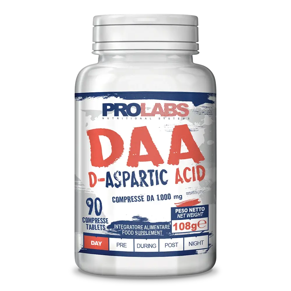 DAA è un integratore alimentare in compressa formulato in particolare per integrare la dieta dell’uomo adulto. Fornisce 1000 mg di Acido D-aspartico (DAA) e zinco per il mantenimento di funzionali livelli di testosterone nel sangue e normale fertilità. La sua formula contiene minerali specifici come il selenio che contribuisce alla normale spermatogenesi, rame invece contribuisce al normale metabolismo energetico. L’acido pantotenico contribuisce alla normale sintesi e al normale metabolismo degli ormoni steroidei, della vitamina D e di alcuni neurotrasmettitori e concorre alla riduzione della stanchezza e dell’affaticamento. La vitamina B6 contribuisce alla regolazione dell’attività ormonale. DAA è indicato sia per gli sportivi che per non sportivi.