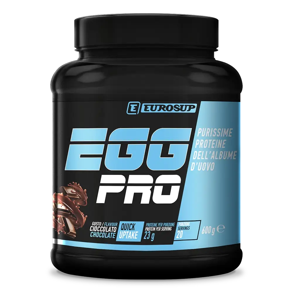 EGG PRO è un integratore alimentare di proteine del bianco d’uovo con edulcoranti, particolarmente adatto agli sportivi, a solubilità istantanea. La vitamina B6 contribuisce al normale metabolismo delle proteine e del glicogeno e alla riduzione della stanchezza e dell’affaticamento. Le proteine dell’uovo sono una fonte proteica di elevatissima qualità, ed hanno un alto valore biologico. I tempi di digestione di queste proteine sono rapidi, quindi il rilascio degli aminoacidi contenuti è veloce.