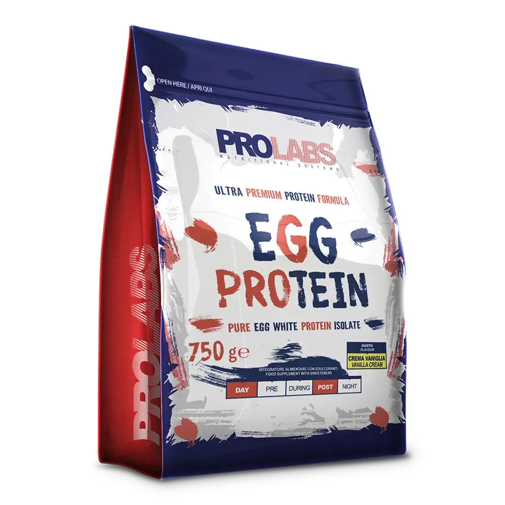 EGG PROTEIN è un integratore alimentare di proteine del bianco d’uovo con edulcoranti, particolarmente adatto agli sportivi, a solubilità istantanea. La vitamina B6 contribuisce al normale metabolismo delle proteine e del glicogeno e alla riduzione della stanchezza e dell’affaticamento. Le proteine dell’uovo sono una fonte proteica di elevatissima qualità, ed hanno un alto valore biologico. I tempi di digestione di queste proteine sono rapidi, quindi il rilascio degli aminoacidi contenuti è veloce.