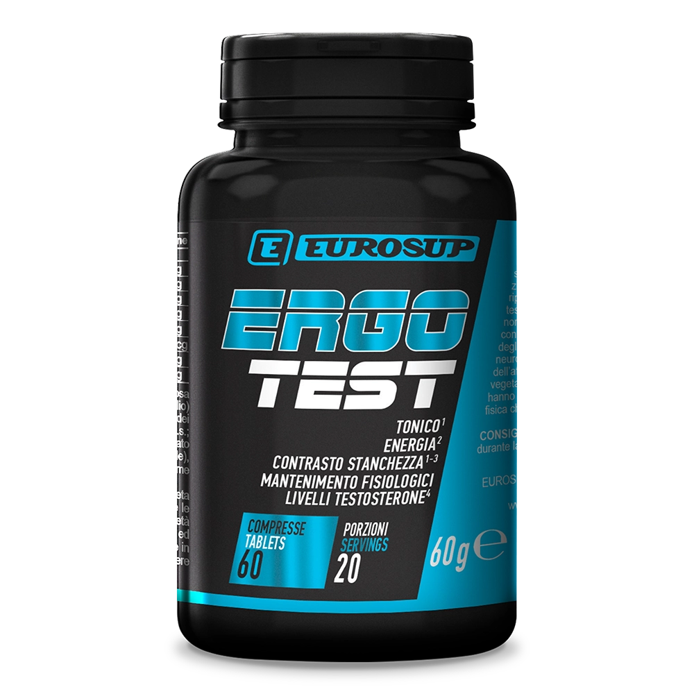 ERGO TEST è un integratore alimentare in compressa che Eurosup ha pensato in particolare per integrare la dieta dell’uomo adulto. Fornisce una componente vegetale specifica per l’uomo, a base di estratti di Muira puama, Maca e Suma, che hanno azione tonica che aiutano a contrastare la stanchezza sia fisica che mentale. La formula contiene minerali specifici come il selenio che contribuisce alla normale spermatogenesi e lo zinco che oltre a contribuire alla normale fertilità e riproduzione concorre al mantenimento di normali livelli di testosterone nel sangue. Il rame invece contribuisce al normale metabolismo energetico. L’acido pantotenico contribuisce alla normale sintesi e al normale metabolismo degli ormoni steroidei, della vitamina D e di alcuni neurotrasmettitori e concorre alla riduzione della stanchezza e dell’affaticamento. Non contiene ingredienti di origine animale ed è adatto anche ai vegani.