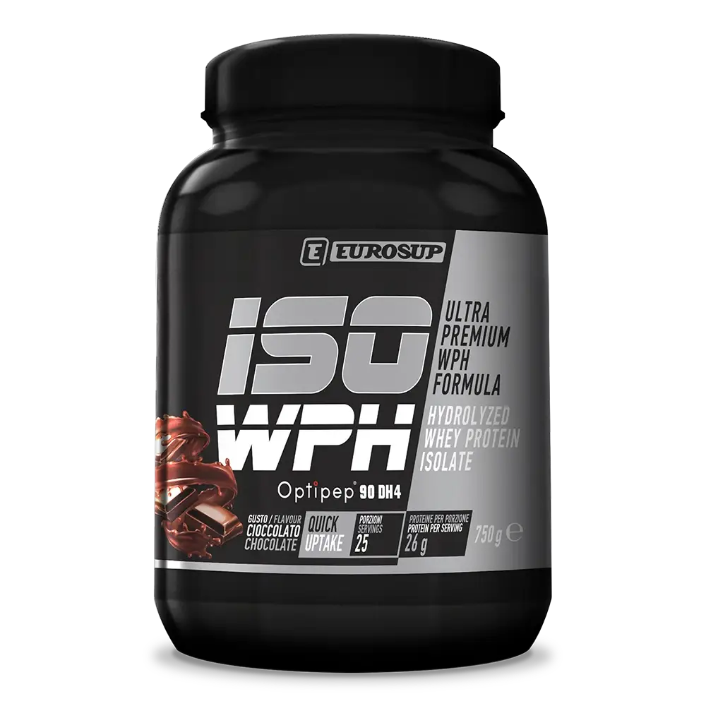 ISO WPH è un integratore alimentare di proteine del siero di latte isolate idrolizzate Optipep® 90 DH4, prodotte in Irlanda da Carbery utilizzando latte di bovini alimentati ad erba (grass fed), sviluppato per gli sportivi più esigenti. Le proteine contribuiscono alla crescita e al mantenimento della massa muscolare. La vitamina B6 contenuta in ISO WPH contribuisce al normale metabolismo delle proteine e del glicogeno e alla riduzione della stanchezza e dell’affaticamento. Le proteine del siero di latte sono una fonte proteica con elevato valore biologico (VB=104) ed elevato contenuto di aminoacidi essenziali ed a catena ramificata. Per questo prodotto, Eurosup ha scelto di utilizzare esclusivamente unicamente Optipep® 90 DH4, prodotto da Carbery, un idrolizzato di proteine del siero di latte isolate di elevatissima qualità, contraddistinto da un ottimale grado di idrolisi. Il processo di idrolisi produce catene peptidiche più corte rispetto alla proteina di partenza, rendendo gli aminoacidi contenuti prontamente disponibili. ISO WPH è istantaneamente solubile e contiene aromi di qualità per garantire un ottimo gusto.