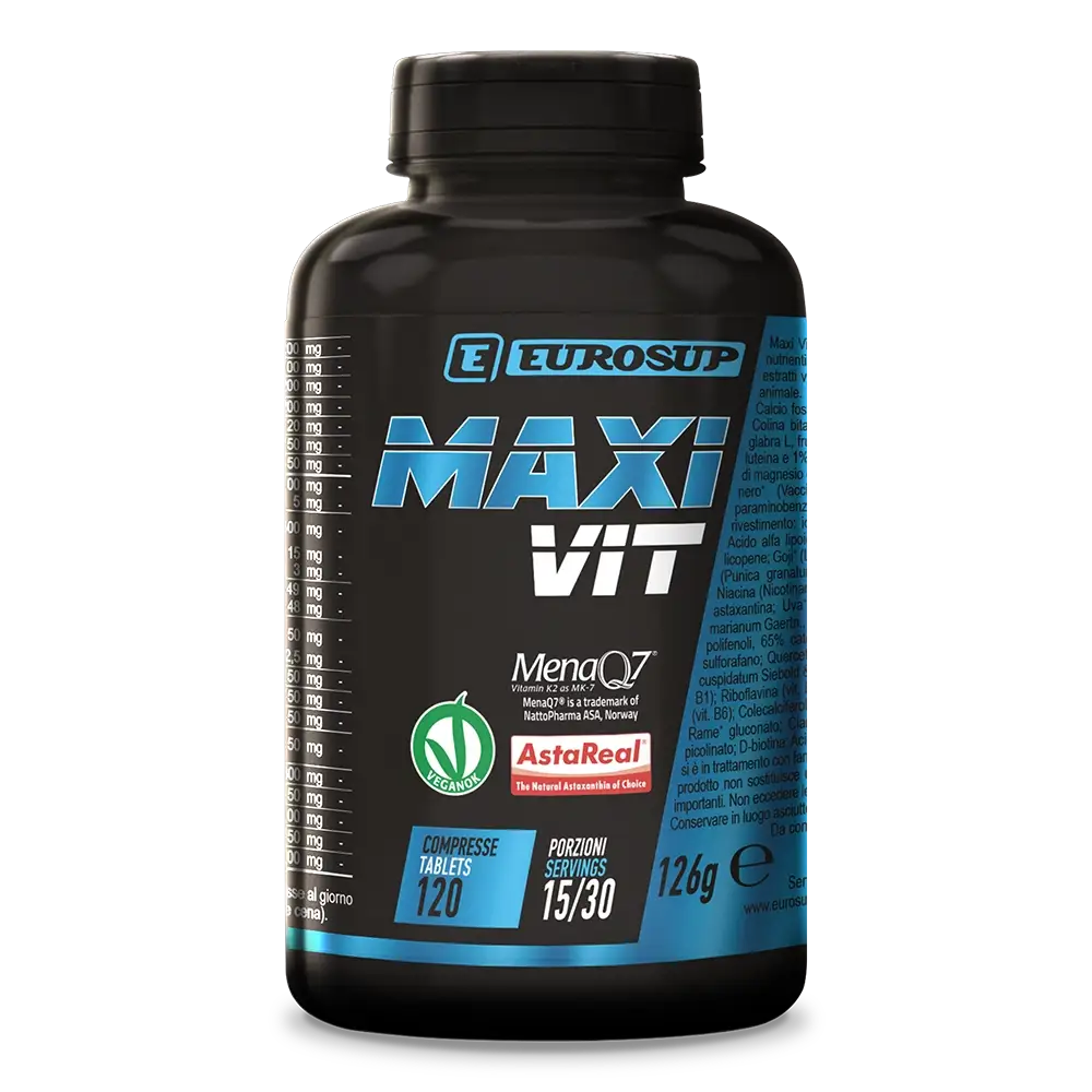 MAXI VIT è un Integratore alimentare salutistico multivitaminico e multiminerale ad alto dosaggio, completo di nutrienti essenziali, antiossidanti, estratti vegetali, componenti con proprietà anti aging. La sua formula avanzata, ora con ben 47 nutrienti, viene costantemente tenuta aggiornata nei dosaggi e nella composizione, per garantire sempre la massima efficacia. MAXI VIT è realizzato senza componenti di derivazione animale ed è certificato VeganOK.