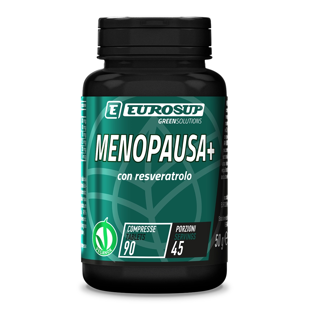 MENOPAUSA+ è un integratore per la donna in menopausa, con isoflavoni di soia, resveratrolo e minerali per supporto ormonale, osseo e antiossidante. VeganOK.