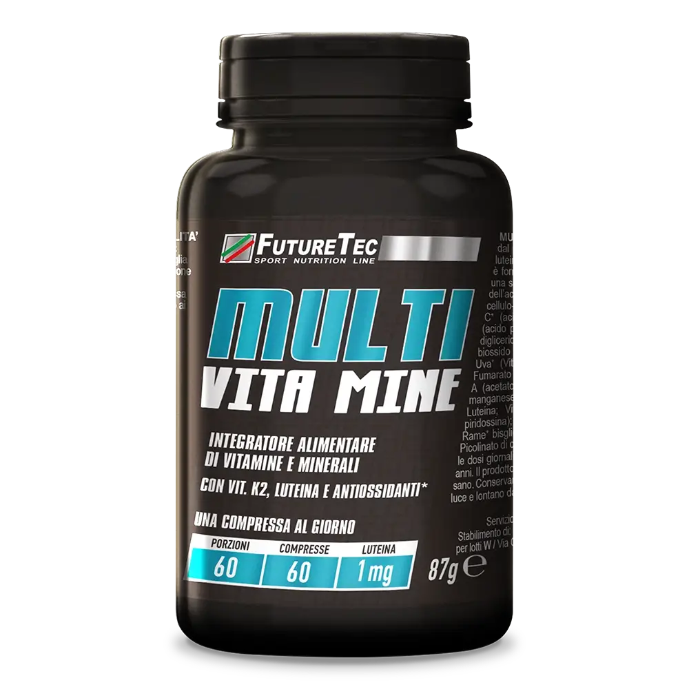 MULTI VITA.MINE è Integratore alimentare di Vitamine e Minerali completo, con Luteina e Antiossidanti. La sua formula concentrata racchiude in una sola compressa al giorno l’apporto adeguato di vitamine, minerali a altri nutrienti utili per mantenere in buona efficienza l’organismo. Non contiene ingredienti di origine animale.