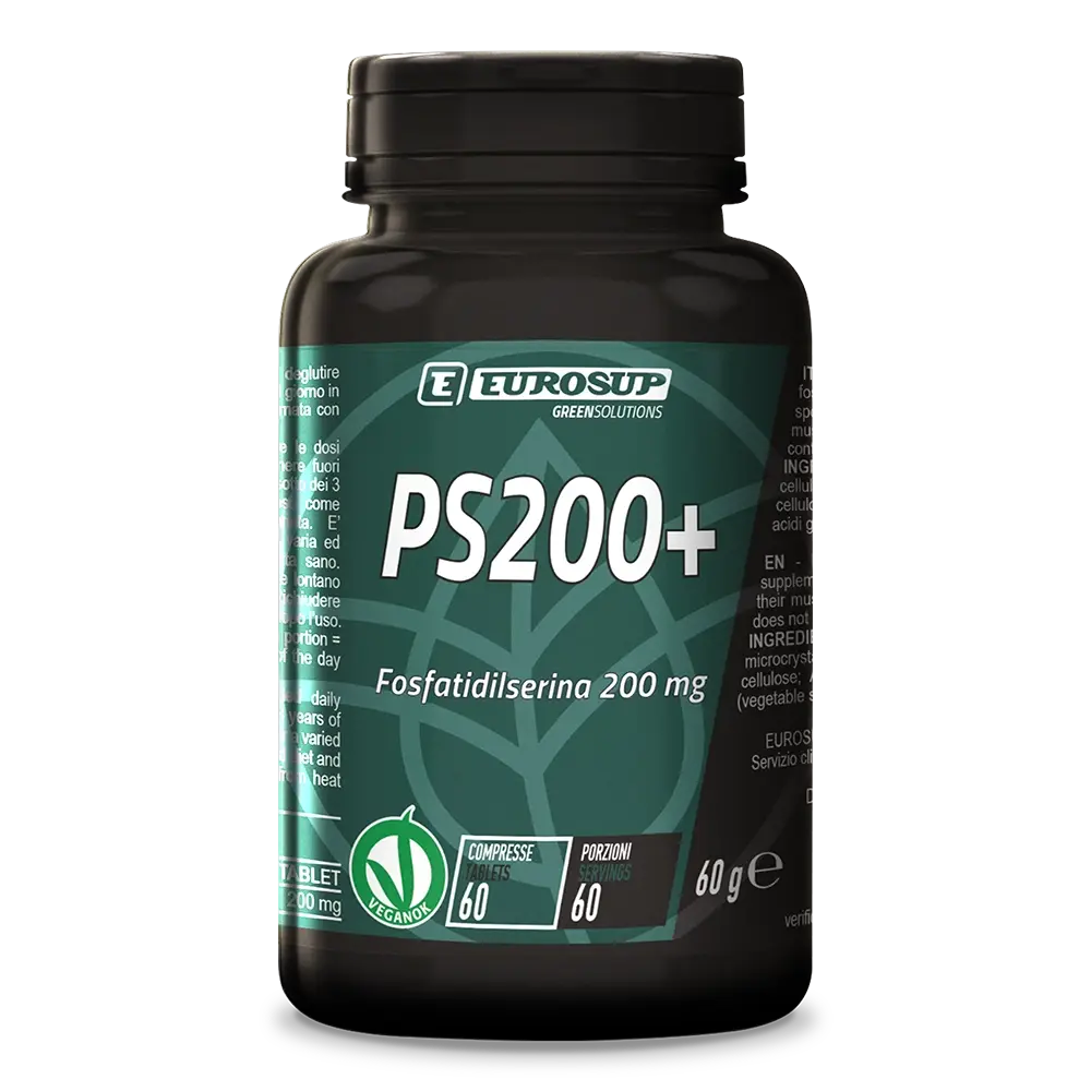 PS 200+ è un integratore ad alto dosaggio di fosfatidilserina, utile per memoria, funzione cognitiva e controllo del cortisolo. Adatto a vegani e vegetariani.