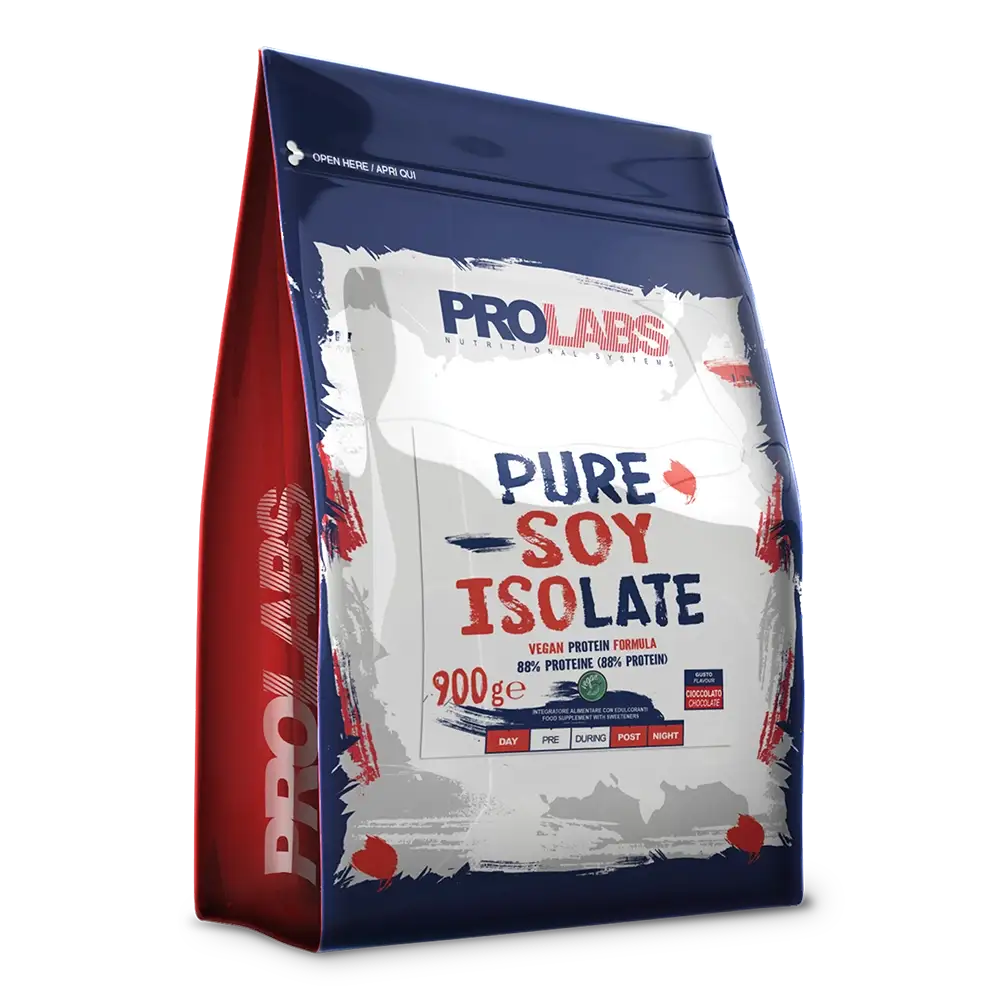 PURE SOY ISOLATE è una proteina isolata di soia ad alto valore biologico, arricchita con vitamine B6 e B12. Ideale per sportivi, vegani e vegetariani.