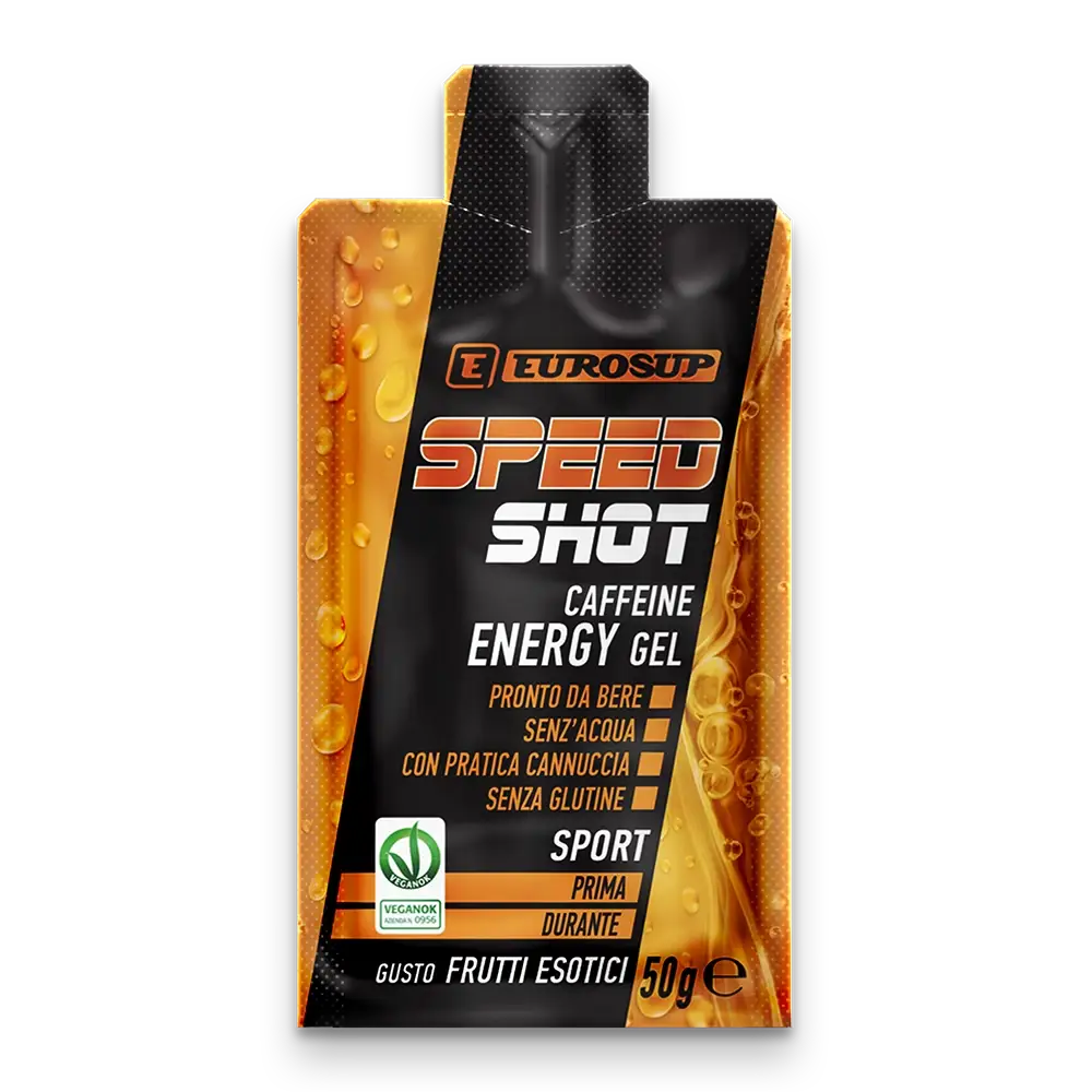 SPEED SHOT è un integratore energetico per sportivi con carboidrati a rilascio differenziato, caffeina e vitamina B1. Aiuta energia, concentrazione e performance. VeganOK e senza glutine.