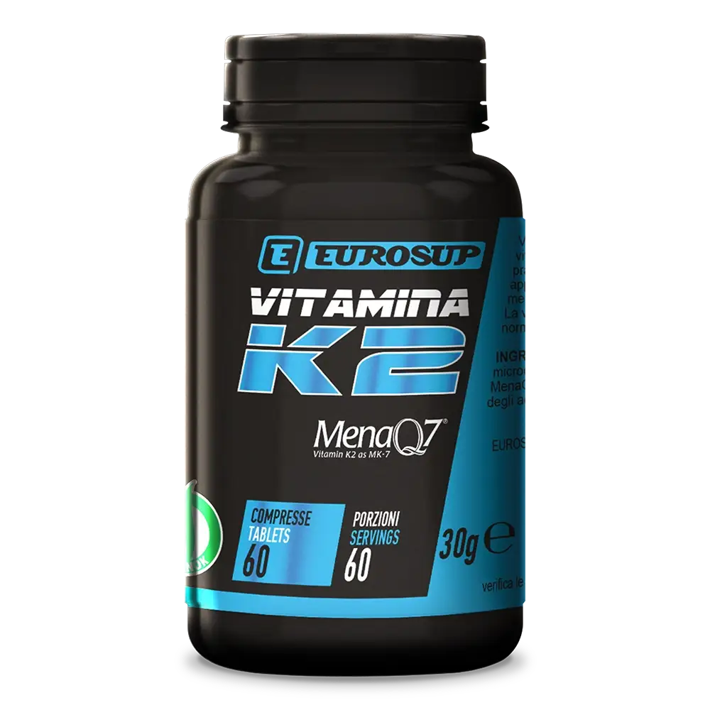 Vitamina K2 è un integratore alimentare di vitamina K2 ad alto dosaggio. Realizzato in pratiche compressine facili da deglutire, che apportano 200 mcg di Vitamina K2 (MK-7 o menachinone-7) di alta qualità MenaQ7®. La vitamina K2 contribuisce al mantenimento di ossa normali. Vitamina K2 è certificata VeganOK.